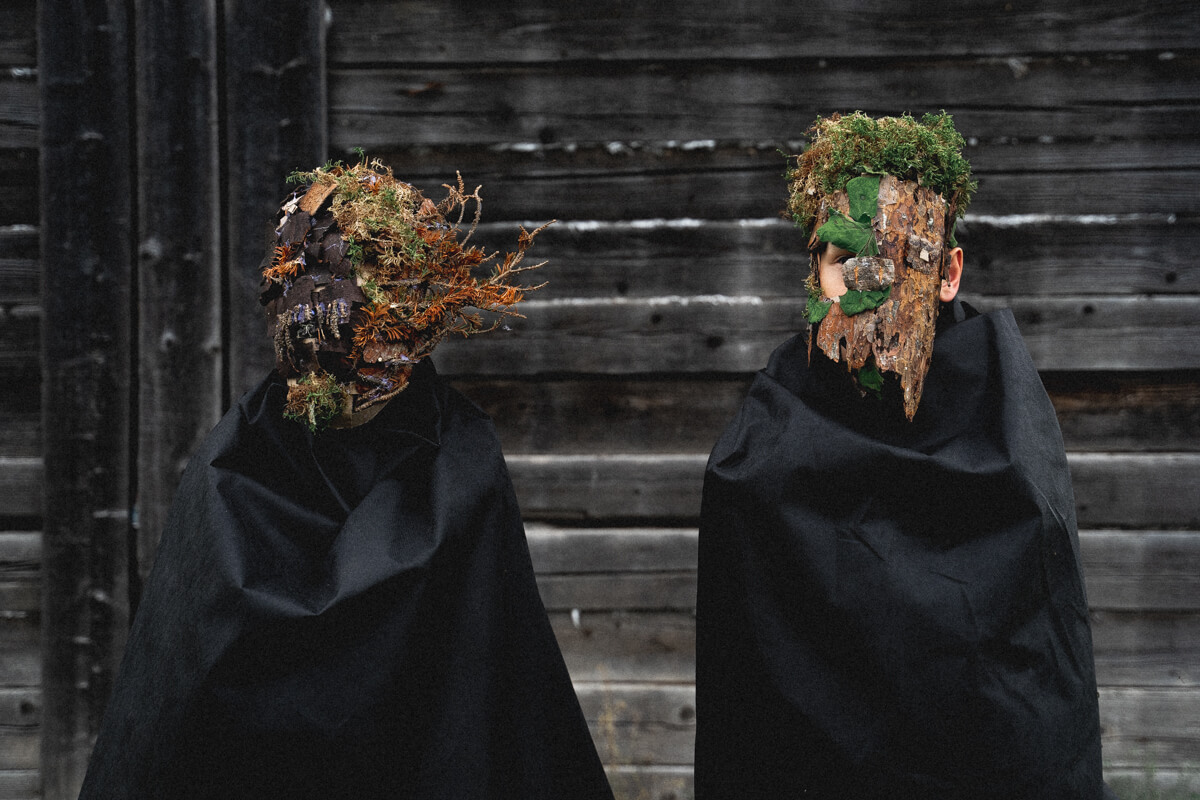 К нам в гости в Большую Кочу приезжала Люба Шмыкова из пермского музея современного искусства. Вместе с ней мы ходили в лес за мхом, ветками и корой. Из всего этого смастерили маски.
